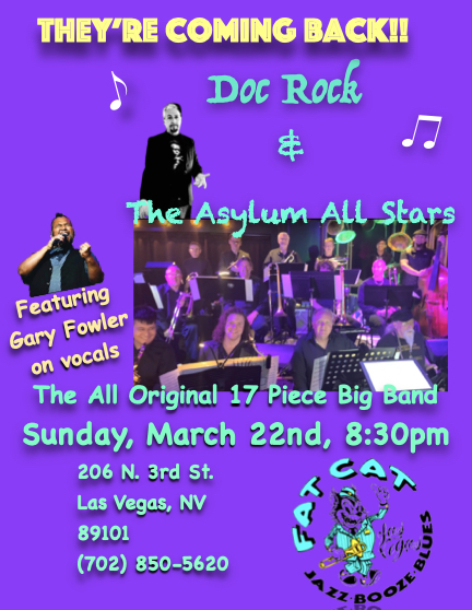 « All Events This event has passed. Doc Rock & The Asylum All Stars- Fat Cat March 22 @ 8:30 pm - 10:30 pm « Ryan Baker Big Band Crooners – Italian American Club Shiwroom Singer & Sachs – Bootlegger Bistro » Add to calendar Google Calendar iCalendar Outlook 365 Outlook Live Details Date: March 22 Time: 8:30 pm - 10:30 pm Organizer Venue Venue Fat Cat 206 N 3rd Street Las Vegas, 89101 United States + Google Map